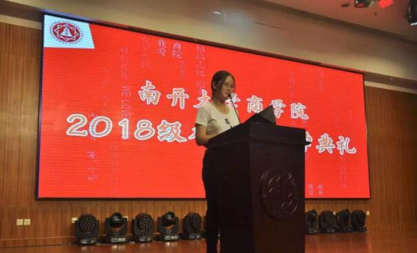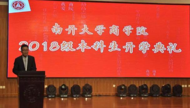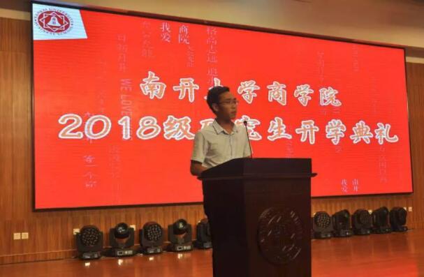 2018级本科生班导师、管理科学与工程系教师李凯作为教师代表欢迎308位怀着对知识的渴望与大学的憧憬的新生迈入南开大门,希望新生在大学不放松学习,将美丽的青春投入奋斗中,在观察中探索,在实践中创新,共同携手走好在南开的每一步,谱写青春之歌。