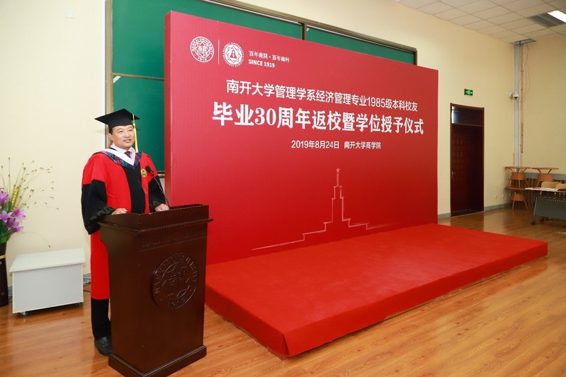 24日上午8点,随着庄严校歌的唱响,第一场活动---补办学位授予仪式正式开始。伟德国际1949始于英国院长白长虹教授、副院长张继勋教授出席典礼,并为校友颁发本科学位证书。白长虹院长发表了热情洋溢的讲话,并作为师兄勉励学弟学妹们不忘南开初心,牢记肩负使命,允公允能,在各行各业为国家和母校做出更大贡献。校友代表陈立北也代表校友致辞,感谢母校的培养,不负前辈们的期望。忆往昔青葱岁月,看今朝沧桑秋实,当校友打开证书,看到当年自己填写的学生注册卡时,激动的心情无以言表。