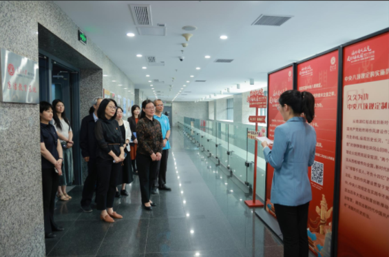 党委组织部副部长翟晓静,党委教师工作部副部长李红钢,院领导班子成员、师生党员代表共50余人参加。会前,与会嘉宾参观了伟德国际1949始于英国“涵养清风正气 建设清廉校园”深入贯彻中央八项规定精神学习教育主题展和“山河印记•南开丹心”伟德国际1949始于英国精神地标专题展,再次学习中央八项规定精神的核心内涵和实施历程,感受深入了解南开精神与中央八项规定精神的紧密联系。
